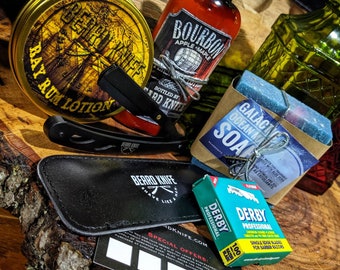 Man Bathroom Starter Pack. Razor, Soap, Brush, Blades, Organic shave GelMen's Self Care